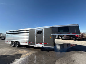 Optional design features add convenience and functionality to your setup. A dual man door on each side of the trailer provides easy access to the tack room, making it much simpler to saddle your horse or grab equipment from either side. The slam latch gate offers quick and secure closure with just a push, which saves you time and hassle, especially when handling livestock. Streamline livestock management with the perfect livestock and stock combo trailer for your transport needs.